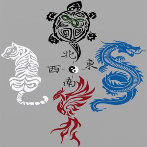 جهت گیریهای جغرافیایی با چهار حیوان اساطیری مرتبط است: